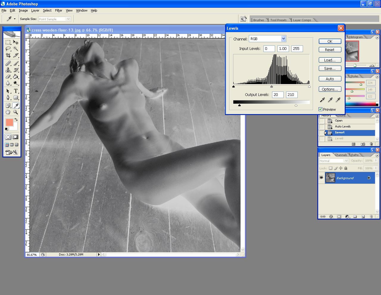 to Image>Adjust>Invert. To alter contrast go to Image>Adjust>Levels.