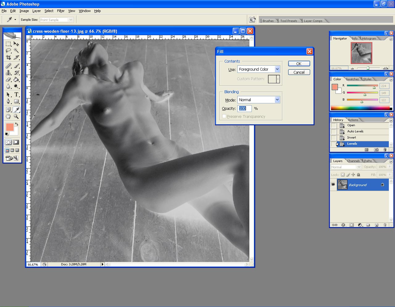film. Click OK. Now go to Edit>Fill. Select OK (fig 3).