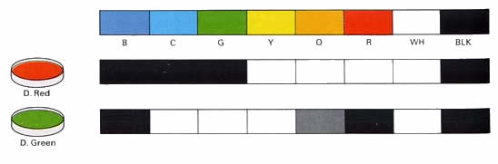 ( the middle chart ) and then through a deep green filter ( the